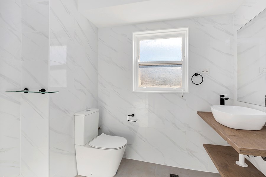- Renovated, sleek modern bathroom