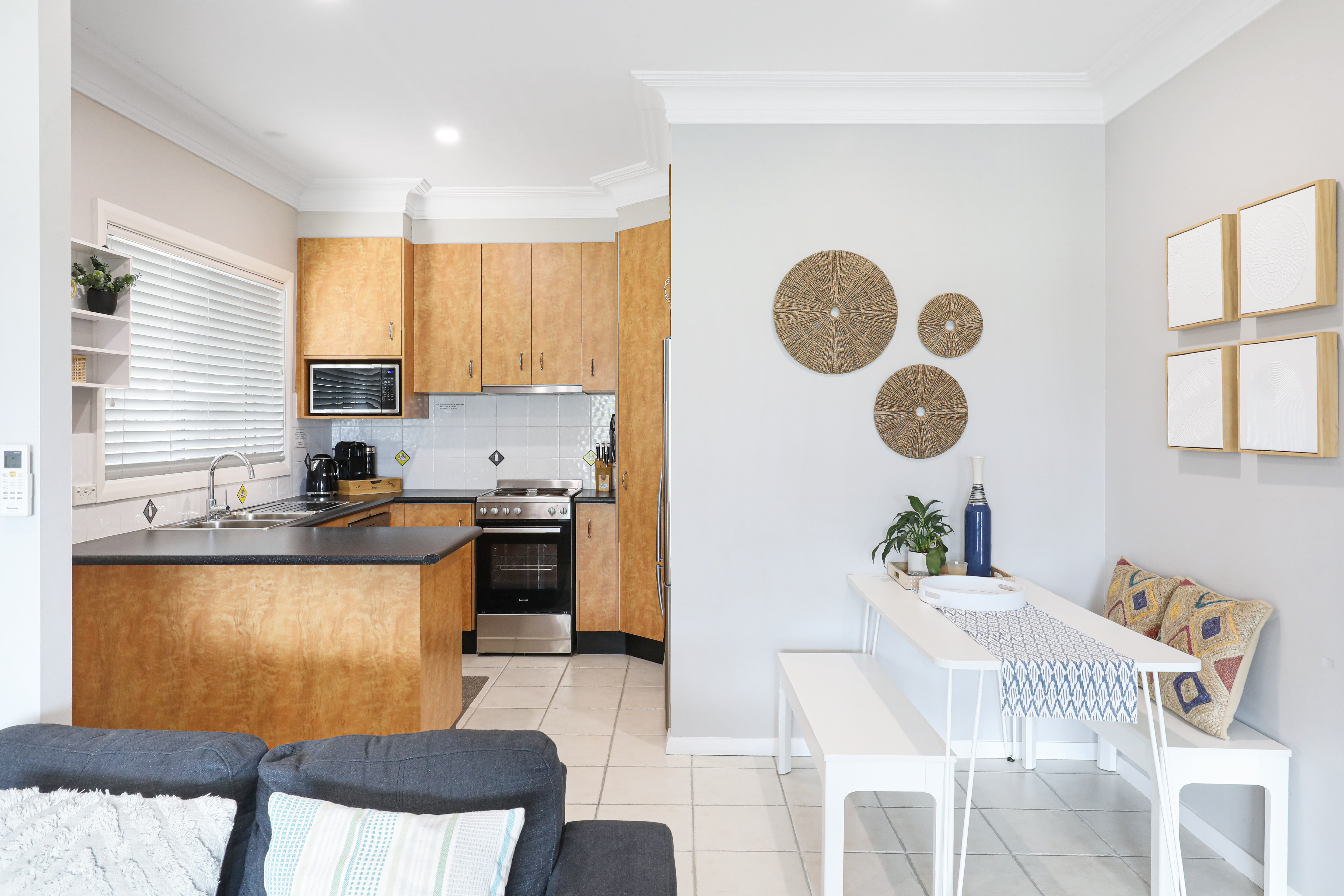 The open-plan layout of the living and dining areas creates a sense of space and allows for effortless entertaining onto you front decking area. The feeling in the home is incredible with plenty of northern light and front grassed courtyard area.