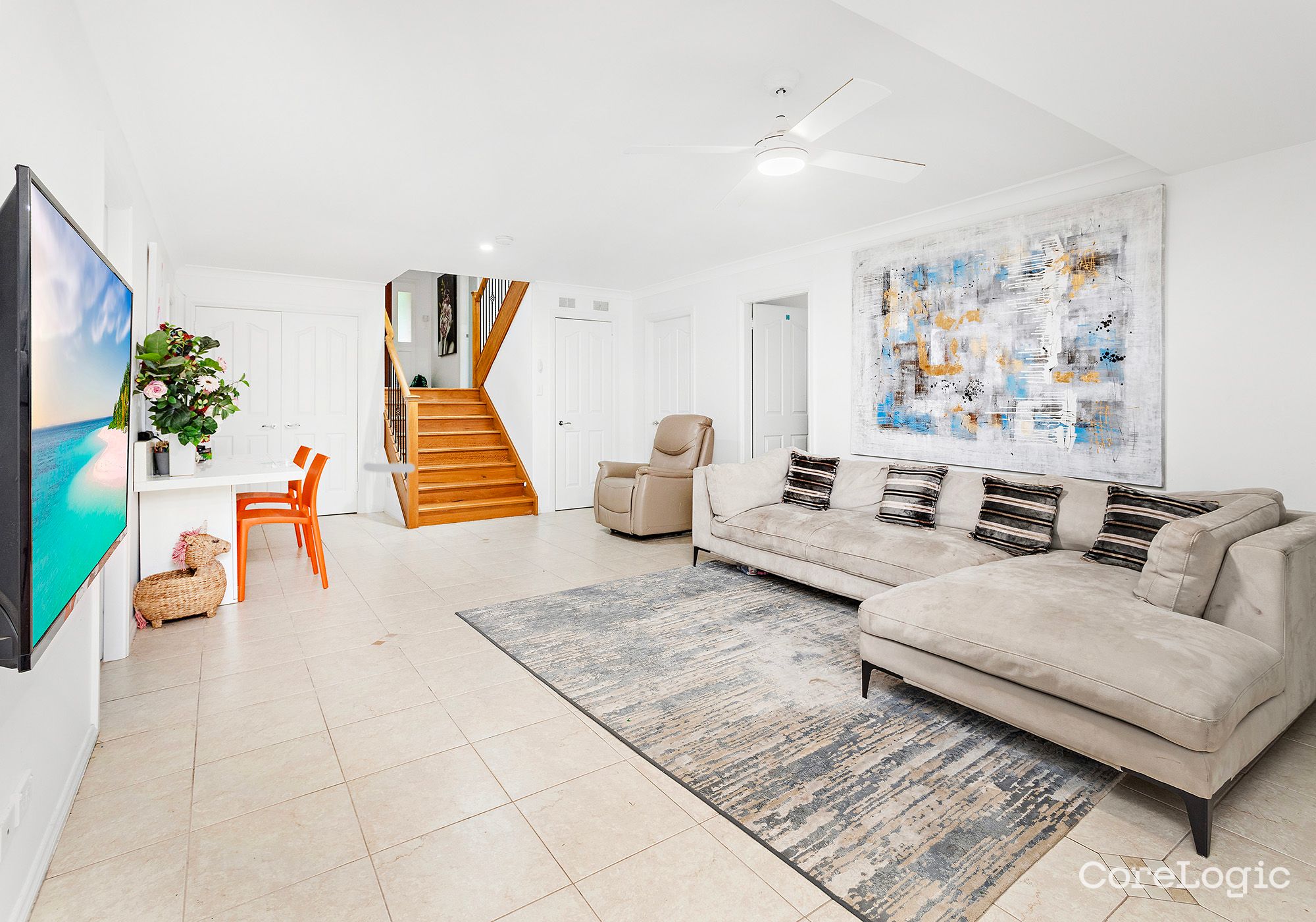 The open-plan living and dining area is perfect for entertaining, with a seamless flow to the outdoor alfresco area. Imagine enjoying a BBQ with family and friends while admiring the beautifully landscaped gardens.